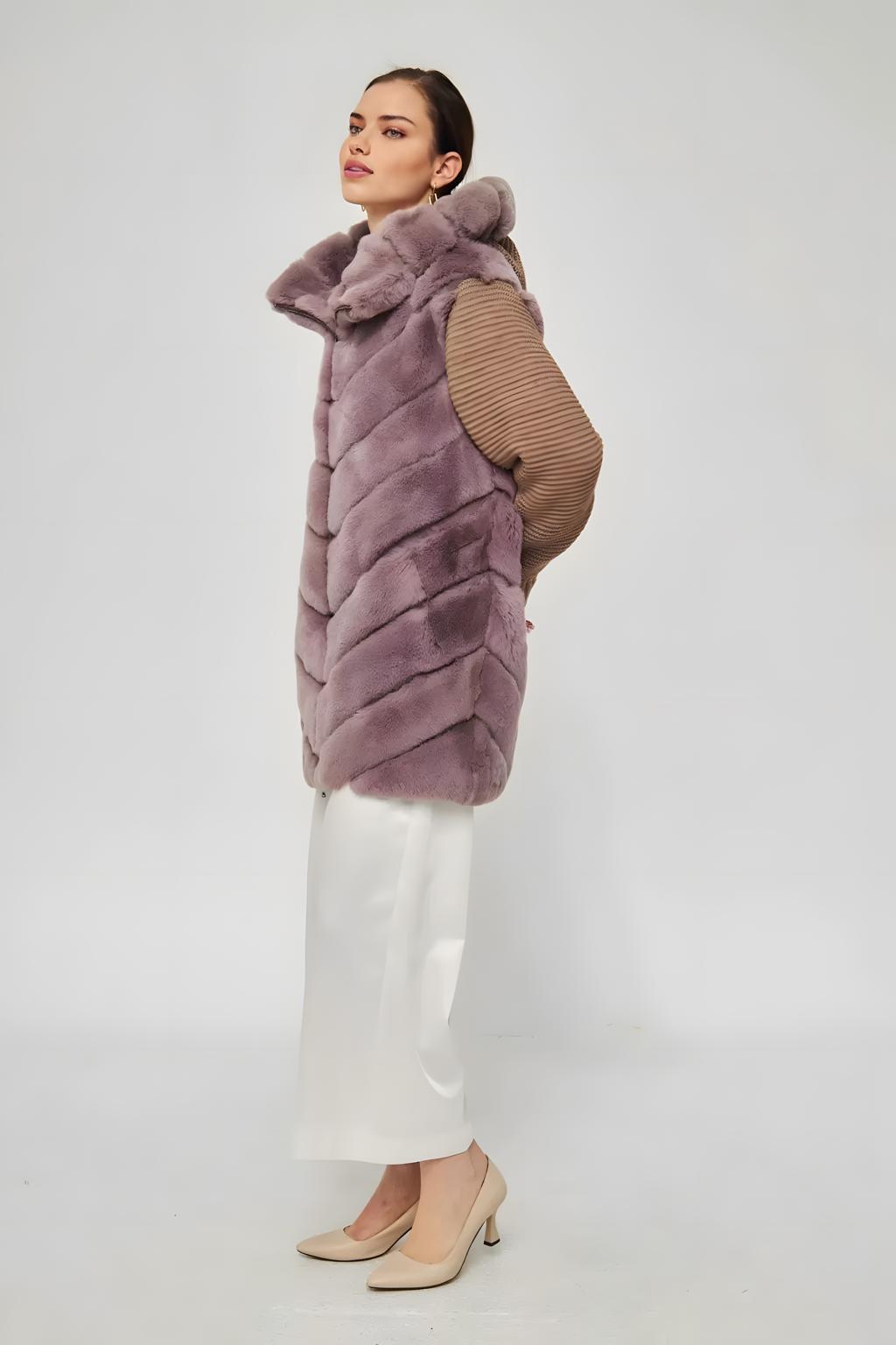 Purple Rex Furrier Coat with Knitwear Sleeves